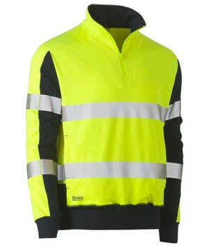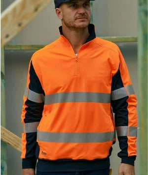 1/4 zip. Hi vis shoulder to sleeve cuff panel for extra side visibility.