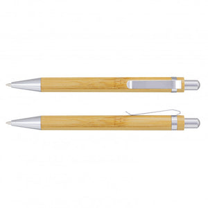 Retractable ball pen with a natural bamboo barrel and shiny chrome accents. It has a black large volume refill with 1800 metres of German manufactured Dokumental ink and a tungsten carbide ball for improved writing quality. Ancona laser engraves to a natural etch.