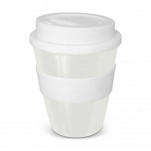 Very popular reusable coffee cup with a heat resistant silicone band and a screw on lid. It is manufactured from tough food grade polypropylene which is dishwasher safe, BPA free and recyclable. An incredible 1728 mix and match colour combinations are available and the price includes one colour combination per order. Multiple colour combinations are available for an additional charge and it can be presented in an optional black gift box.