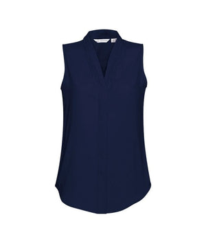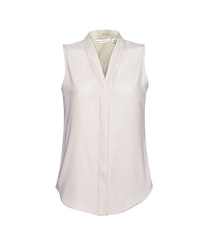 Easy elegance, the Madison Sleeveless Blouse has a clean shawl collar neckline and concealed buttons creating a beautiful understated silhouette.