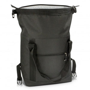 Sophisticated 14L cooler bag which is manufactured from smart 600D polyester with PE foam insulation encased in a waterproof PEVA inner liner. The bag has a zippered roll top closure and secure clips to lock the ends away neatly. Other features include a gusset for increased capacity, a zippered external pocket and woven carry handles.