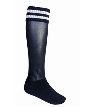 Unisex knee length sports sock in a variety of plains and stripes.