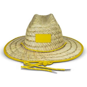 Classic wide brim straw hat with black trim. This breathable hat is ideal for summer months and features a woven polyester patch that provides an affordable branding opportunity and an adjustable toggle so that one size will fit most people.