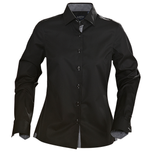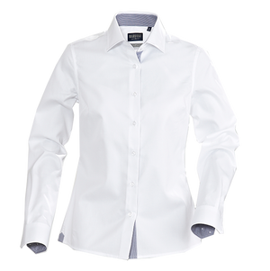 High quality ladies’ fitted blouse in easy care treated fabric. Reinforced seams in collar and sleeve ends.