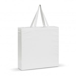 Reusable tote bag with a gusset which is manufactured from 130gsm cotton.