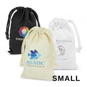 These drawstring gift bags come in 3 sizes, Small, Medium and Large. They're manufactured from 120gsm cotton.