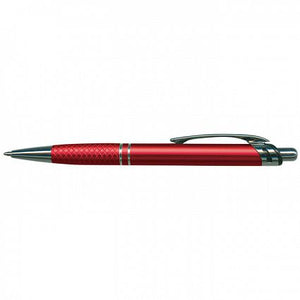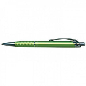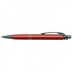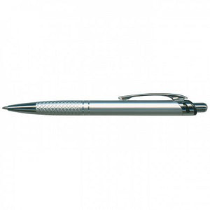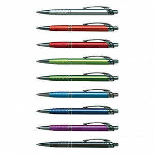 Retractable aluminium ball pen with a matt anodised barrel and shiny chrome accents.