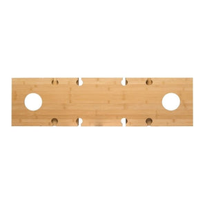 Foldable/packable - alfresco table top table, with integrated holders for eight stemmed glass and two bottles. This bamboo table takes the cheese board to the next level.