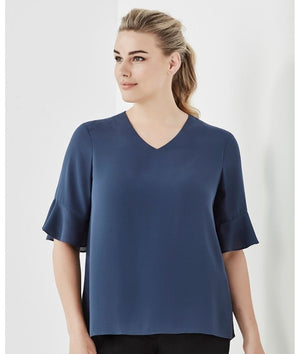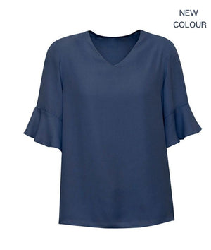 On trend styling made from a luxurious lightweight breezy Georgette fabric with a beautiful surface texture and soft drape. Easy slip on style top with soft fluted sleeves. Straight hem cut, wear tucked in or out.