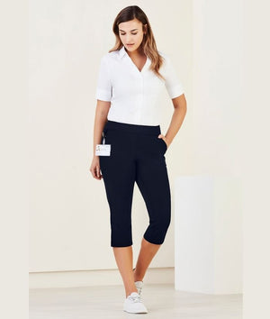 The perfect pull on stretch pant in a light weight fabric that is durable and comfortable