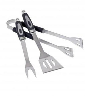 3-pcs stainless steel BBQ tool set includes a 35cm spatula, fork and tongs