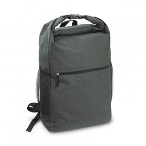 Large backpack which is manufactured from smart 300D polyester with a padded 600D polyester back panel for comfortable carrying. It has 210D polyester lining and a roll top closure with a secure snap lock. Other features include an internal slip pocket for a laptop or a tablet, a large zippered external pocket, two mesh side pockets, a carry handle and adjustable shoulder straps which are padded.