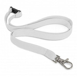 12mm wide lanyard with a metal clip and a safety clip. Supplied unbranded