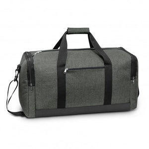Carry on size duffle bag which is manufactured from poly-canvas with an on-trend heather style finish. It has woven carry handles with a Velcro cuff and an adjustable woven shoulder strap which is removable. Other features include two zippered end pockets, a zippered side pocket and a tough 600D polyester base.